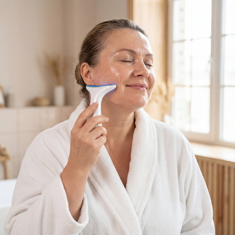 Facial massage has long been used in Eastern beauty practices as a method of temporarily de-puffing the skin to promote a slimmer, refreshed appearance. The Red-Light Therapy Wand's gentle facial massage soothes the skin, boosting its natural radiance.