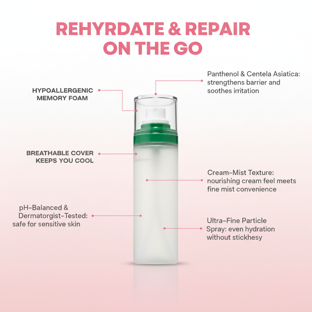 Experience the soothing power of panthenol and centella asiatica in a convenient spray. Embrace lasting comfort and glow—your skin deserves the best.
