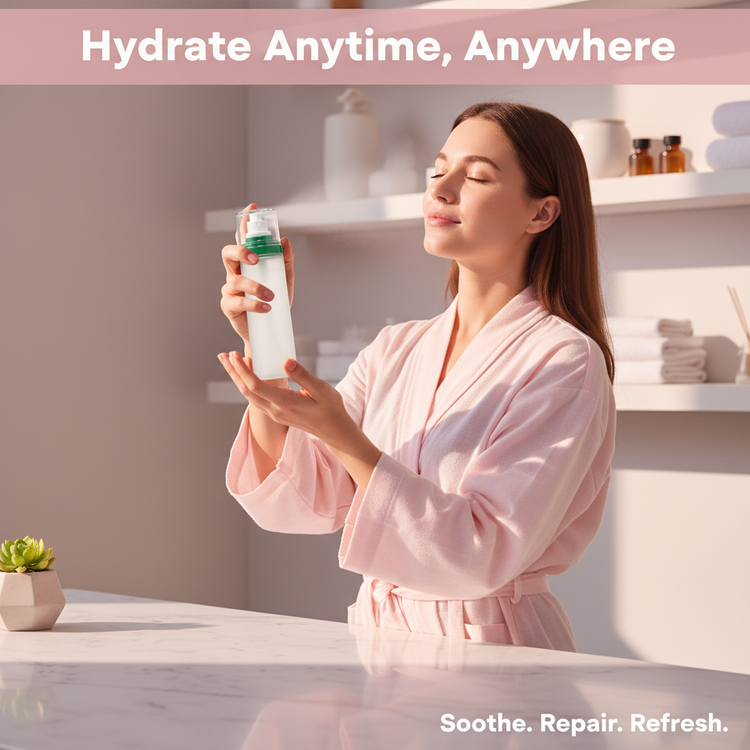 Use it anytime—before makeup, during the day, or after cleansing. You can mist as often as needed for lasting hydration.
