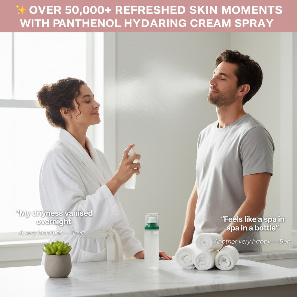 Witness real transformations as skin drinks in our hydrating cream spray. From desert-dry to dewy glow, see how a simple mist can boost confidence and comfort.